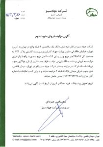 آگهی مزایده فروش- نوبت اول (شش دانک یک ساختمان 4 طبقه)